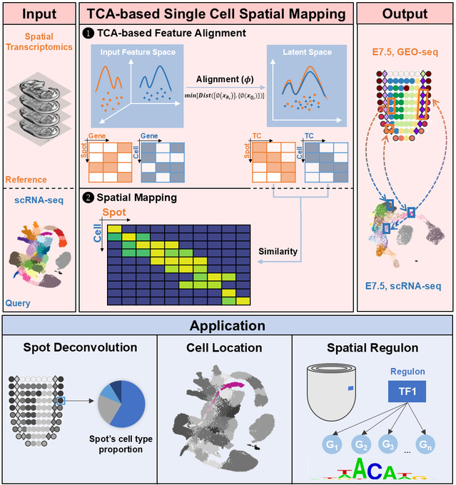 The fate determination of cardiac progenitor cells is closely linked to their precise spatial localization. However, traditional methods cannot achieve spatial information analysis with single-cell precision, making it difficult to accurately define progenitor cell subtypes and their spatial distribution. To overcome this challenge, the research team proposed an integration strategy based on Transfer Component Analysis (TCA), named SEU-TCA. By jointly analyzing single-cell RNA sequencing (scRNA-seq) and spatial transcriptomics (ST) data, this method achieves accurate spatial mapping of single cells. The team systematically evaluated the performance of SEU-TCA and compared it with other algorithms using various biological samples from different technology platforms (mouse gastrula, human heart, mouse olfactory bulb, human pancreatic ductal adenocarcinoma), demonstrating SEU-TCA's superior capabilities in spatial deconvolution and single-cell localization. Particularly in the integration of scRNA-seq data and spatial atlases of mouse E7.5 embryos, SEU-TCA successfully established a correlation between gene expression levels and spatial positions, thereby revealing multiple spatially specific mesodermal cell subtypes.